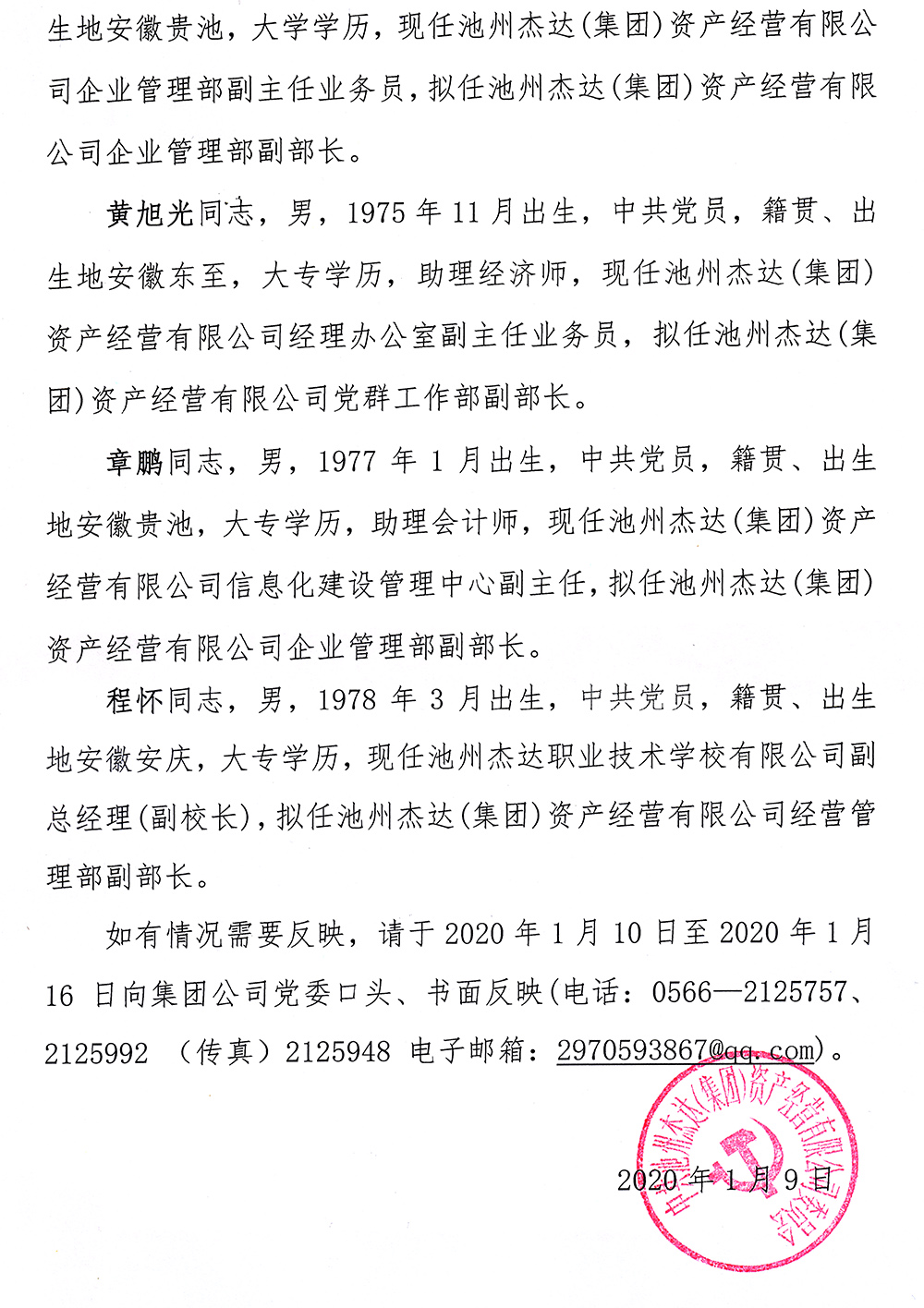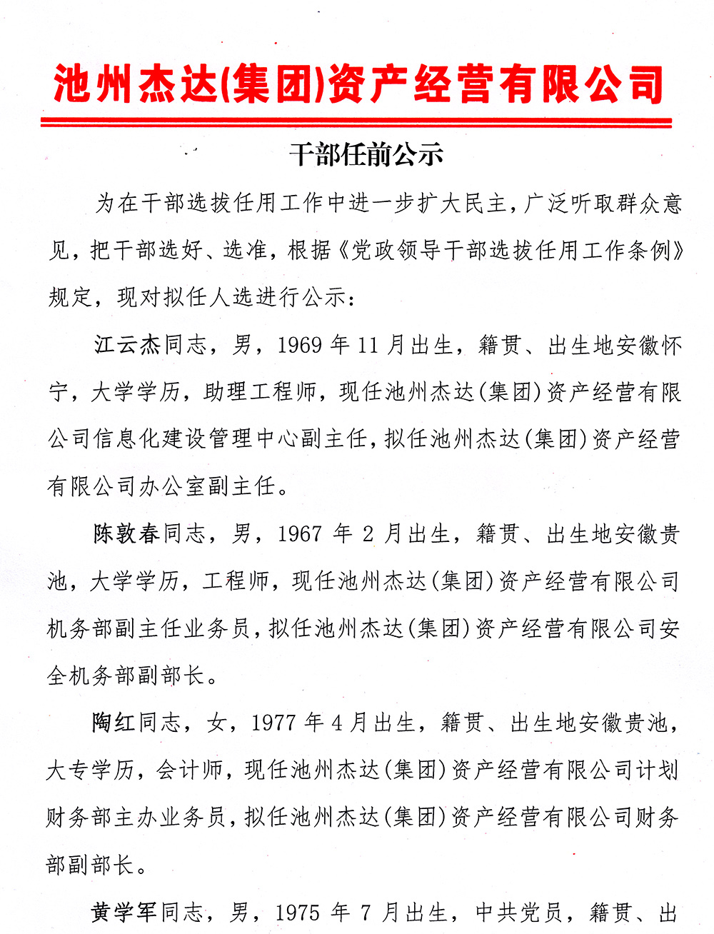 >> 通知公告 >> 杰達集團公司機關部門副職七位同志任前公示