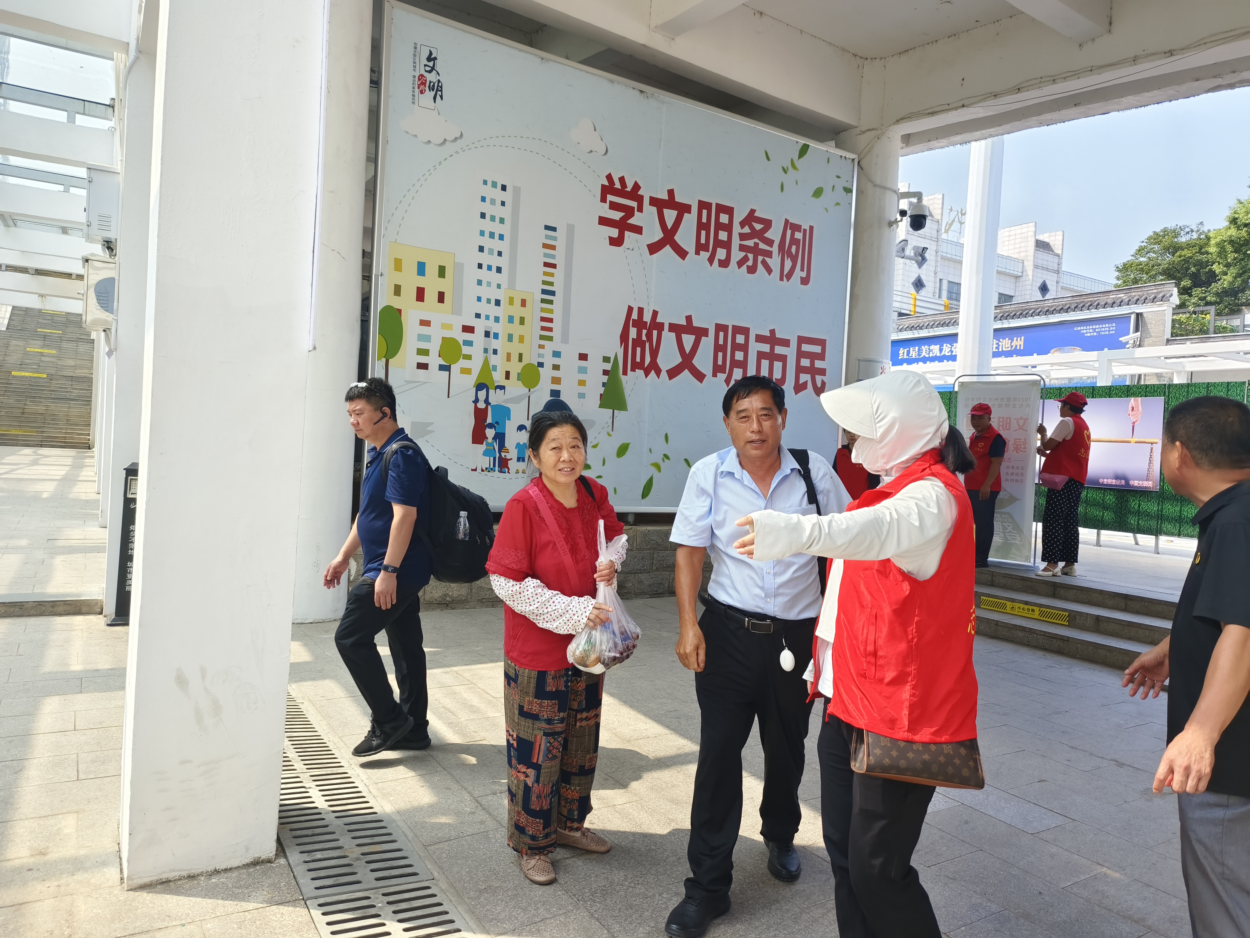 隨后,池州城市公交黨總支組織黨員、發展對象、積極分子在火車站出口加強宣傳,引導旅客文明出游、安全出行,展示池城特色的地域文化和人文關懷,努力倡導旅客文明交通、文明出行。