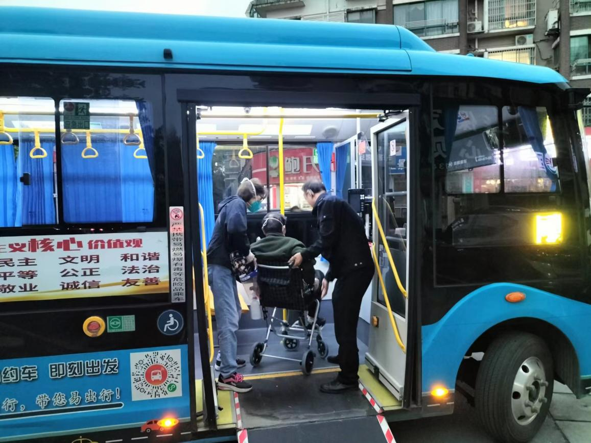 10月3日傍晚17:38分,池州網約微公交接到特殊的一單,負責將一位坐輪椅的老人從市人民醫院護送至清溪橋公交站。