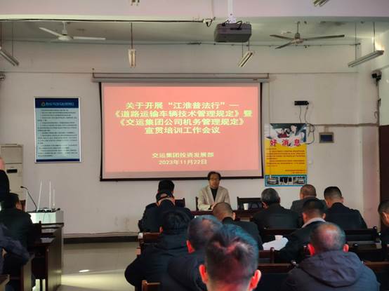 為進一步全面貫徹落實集團公司安全生產工作部署,加強車輛機務管理,確保車輛技術狀況良好、低耗、安全可靠地運行,交運集團結合“江淮普法行”活動組織開展《道路運輸車輛技術管理規定》和《交運集團公司機務管理規定》等相關內容的培訓。